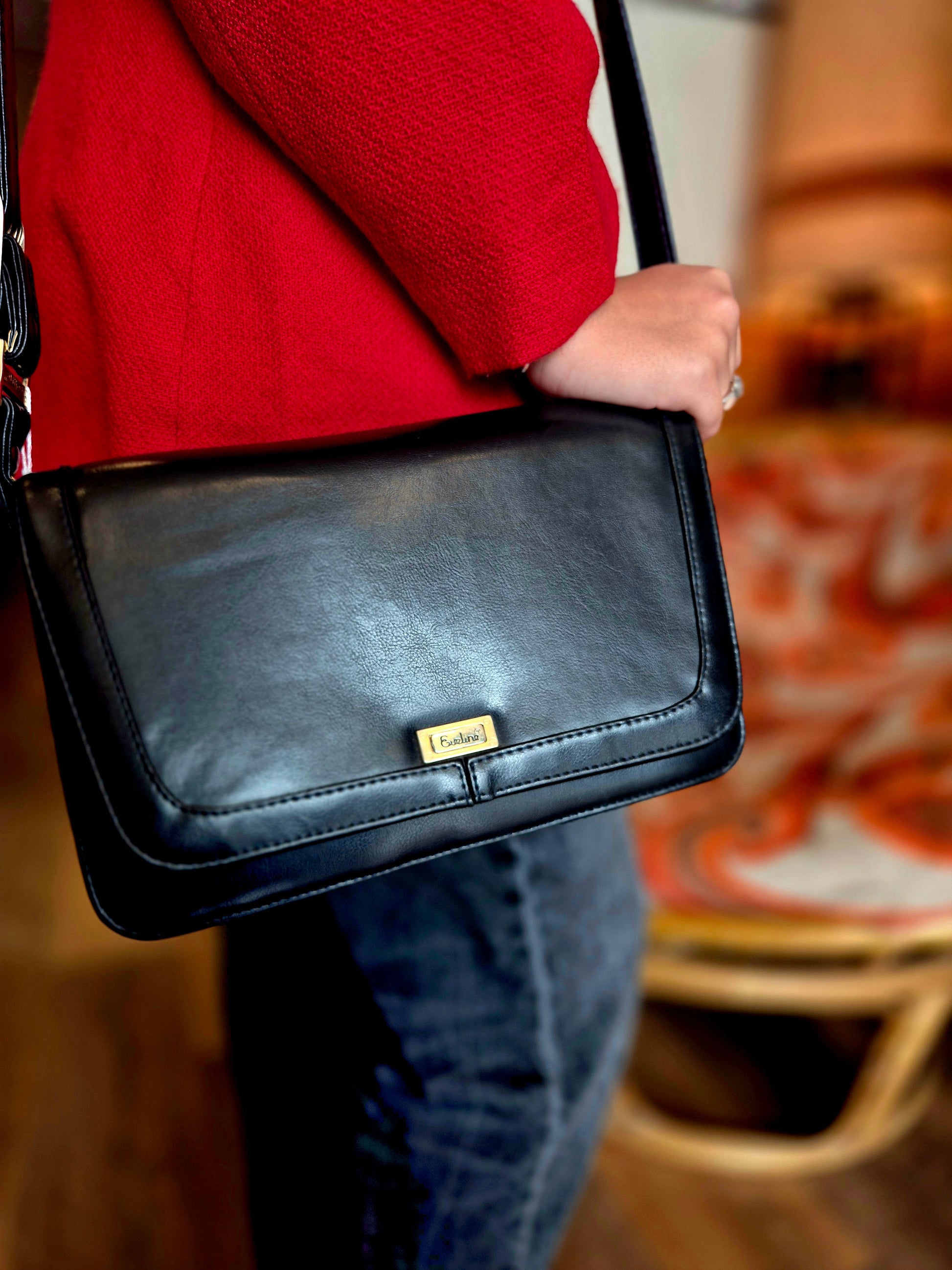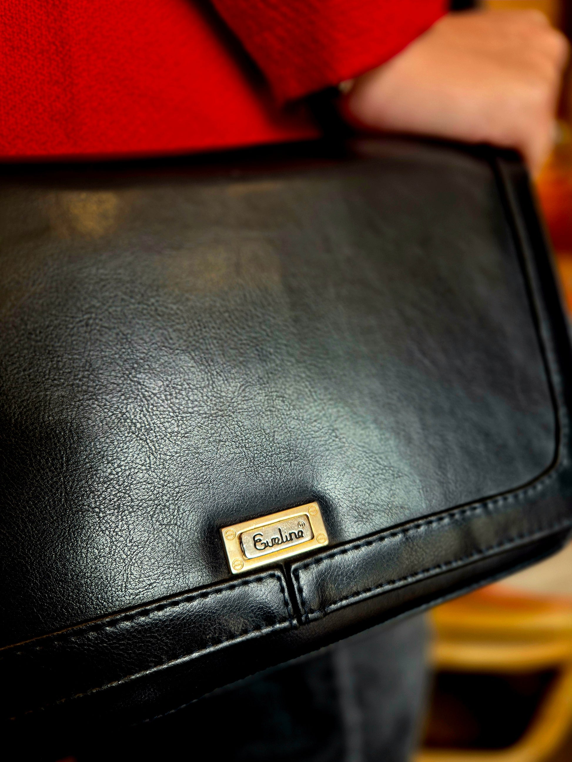 Take a step into the past with the 1980s Black 'Evelina' Leather Handbag. With its structured shape and premium leather construction, this bag offers a perfect blend of retro sophistication and modern functionality. It’s the ultimate accessory for anyone who loves a classic, enduring style.