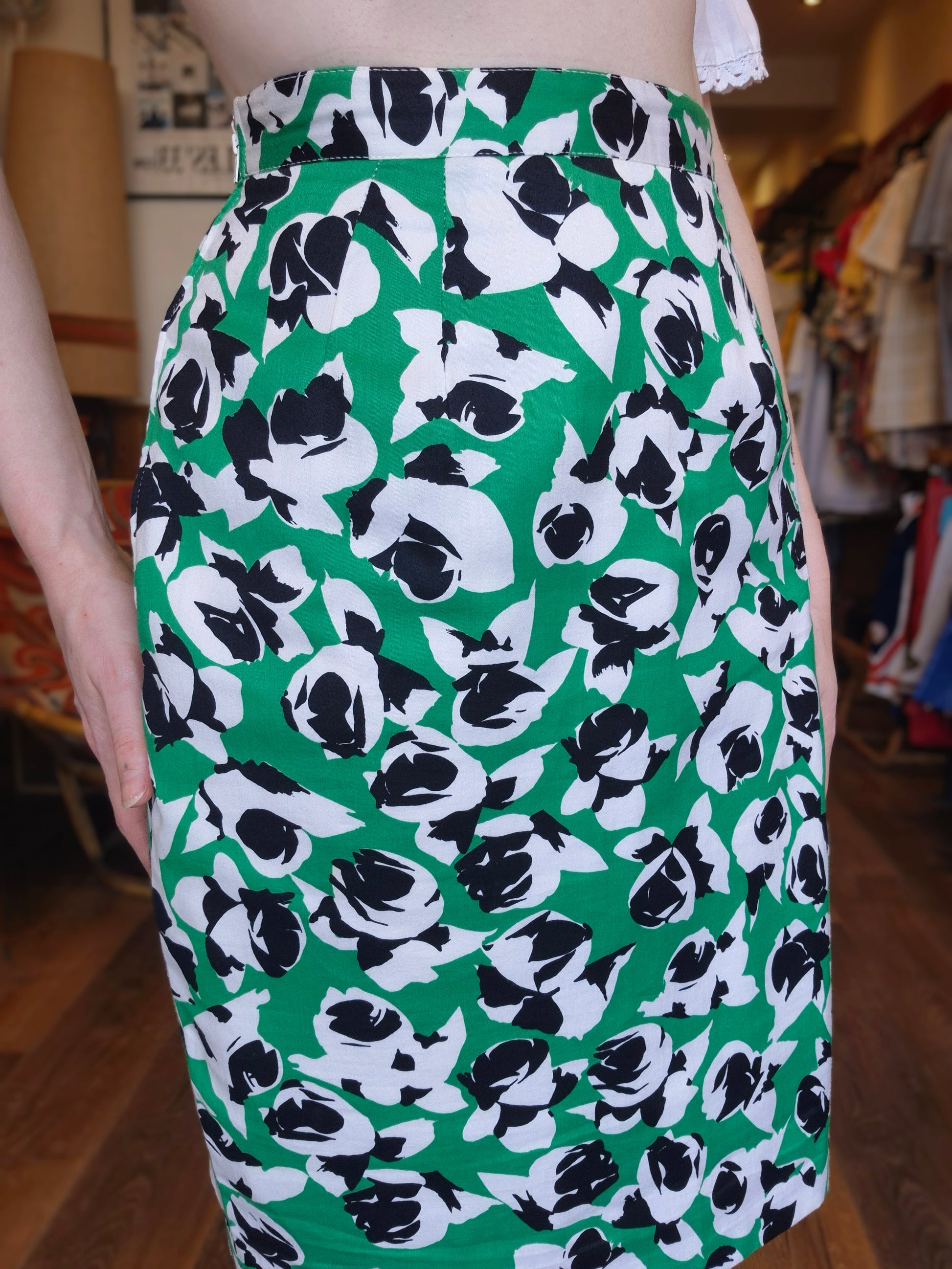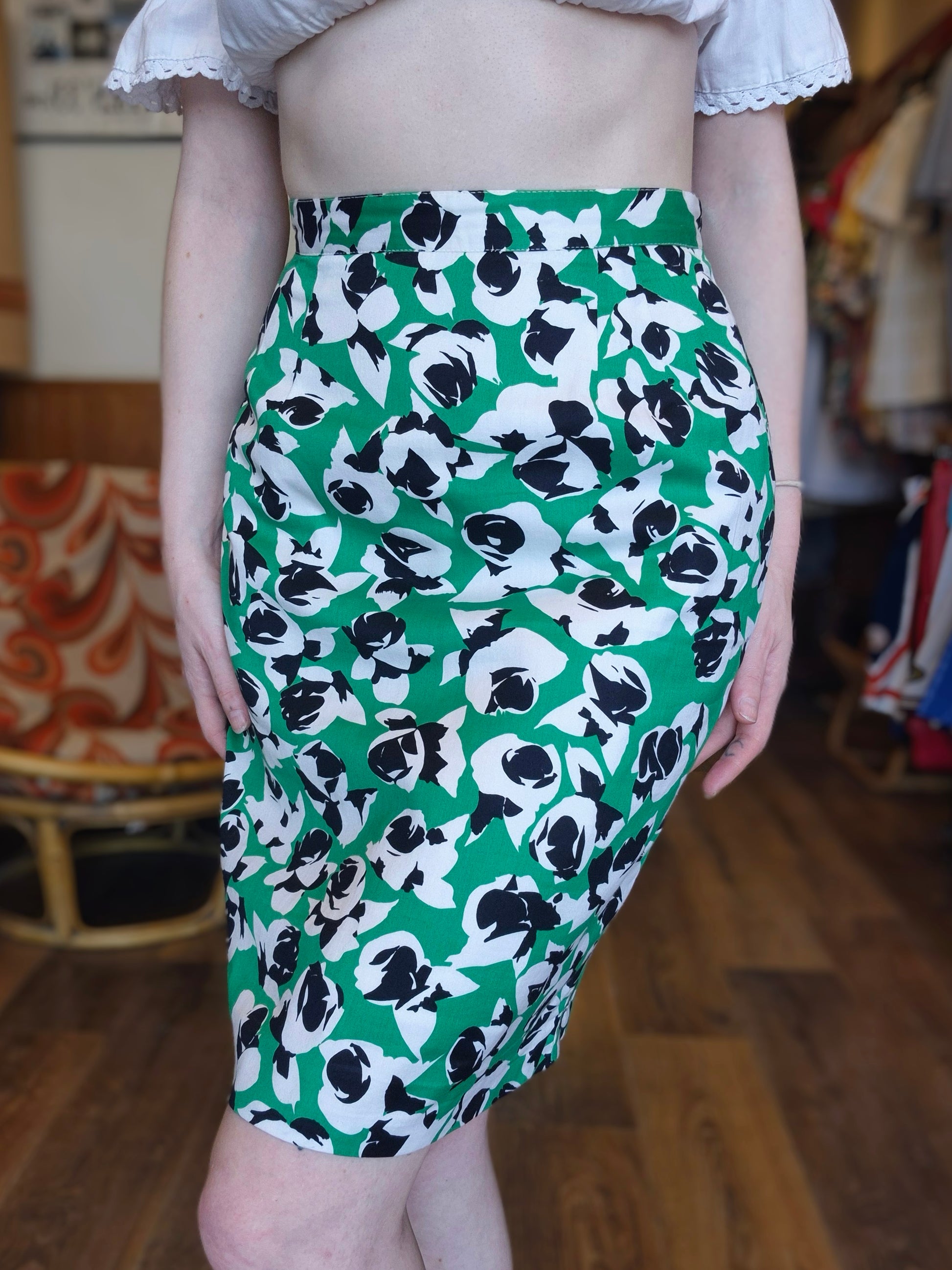 Green Floral Pencil Skirt